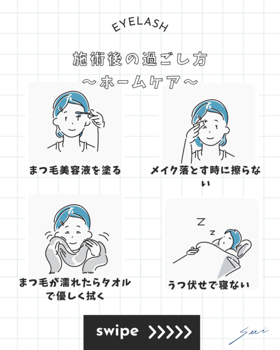 《まつ毛パーマを長くキレイに楽しむためには、 施術後のケアがとても大切です》