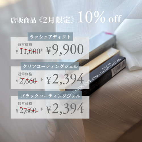 → まつ毛美容液(コーティングジェル)を施術と合わせてご購入いただくと施術料金から10%OFF となります。