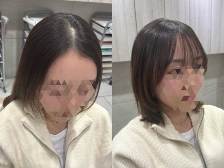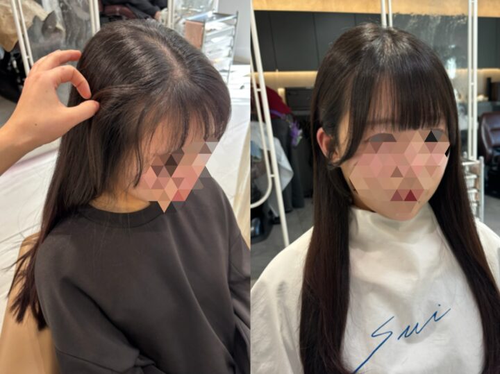 右側に生えぐせが強いお客様。うねりもあるのでストレートと同時施術で綺麗になりました!毎朝のセットがかなり楽になります🙆♀️
