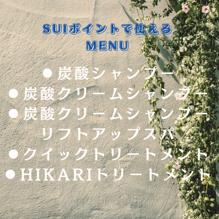 ポイント使ってトリートメント・炭酸シャンプー類をする場合はご予約の時にそのメニューも追加して