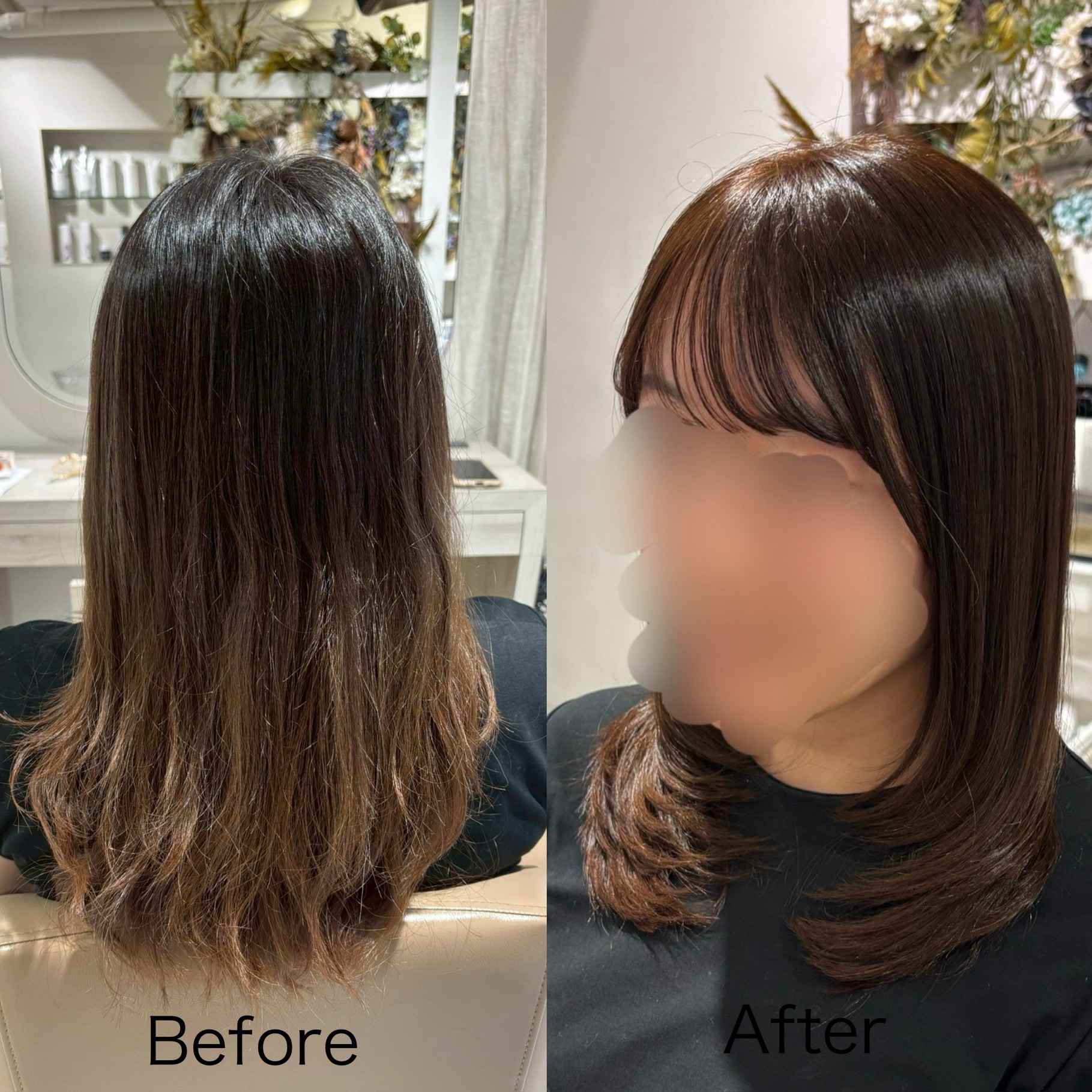 仕上がりを長く楽しむために、当日は強い摩擦や高温アイロンを避け、保湿系のホームケアをおすすめします。必要に応じて、褪色の過程まで含めた**次回提案(色味調整・ケア)**も行います。